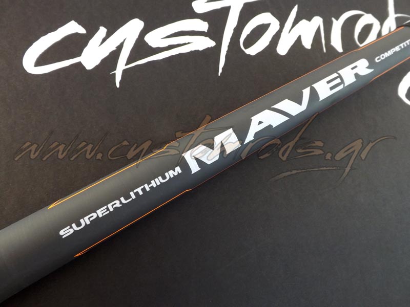 Bolognese καλάμι 6 μέτρων της εταιρείας Maver. Πρόκειται για νέα σειρά καλαμιών Superlithium, τα οποία είναι στιβαρά, γρήγορα και ελαφριά με πολύ χαμηλό βάρος. Μπορούν να χρησιμοποιηθούν με παράμαλλα μέχρι 0,25mm διάμετρο και το συγκεκριμένο ήρθε στα χέρια μας χωρίς οδηγούς και βάση μηχανισμού, κατόπιν παραγγελίας του κατόχου του. Αφαιρέθηκαν όλα τα στελέχη και σημειώσαμε στο καθένα ξεχωριστά το νεύρο του για να το έχουμε σαν οδηγό για να δέσουμε εκεί ακριβώς τα δαχτυλίδια. Το καλάμι, συνδυάστηκε με μια σειρά Fuji Fazlite και βάση μηχανισμού Fuji NS GM Shiny Gray χρώματος για να ταιριάζει με τους οδηγούς που ήταν σε Frosted Dark Gray χρώμα. Οι κλωστές συνδυάστηκαν αντίστοιχα με τα χρώματα του καλαμιού και χρησιμοποιήσαμε τη σειρά Ultra Poly της Fuji οι οποίες μας κάλυπταν χρωματικά και φυσικά ποιοτικά, καθώς είναι ότι καλύτερο κυκλοφορεί αυτή τη στιγμή στο χώρο μας. Κάτω από τη βάση του μηχανισμού, τοποθετήσαμε θερμοσυστελλόμενο για καλύτερη αίσθηση κρατήματος με υγρασίες και βρεγμένα χέρια, ειδικά τη νύχτα καθώς επίσης και για το γεγονός πως καθαρίζεται ευκολότερα στο τέλος του ψαρέματος μ΄ ένα βρεγμένο πανάκι.