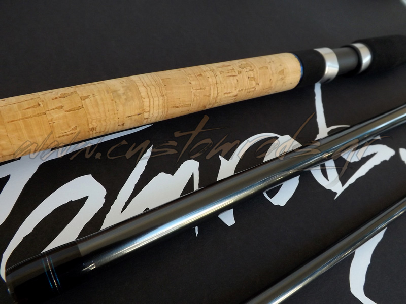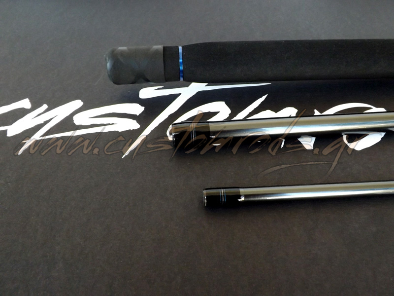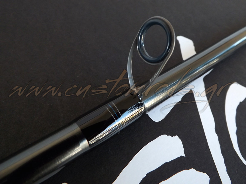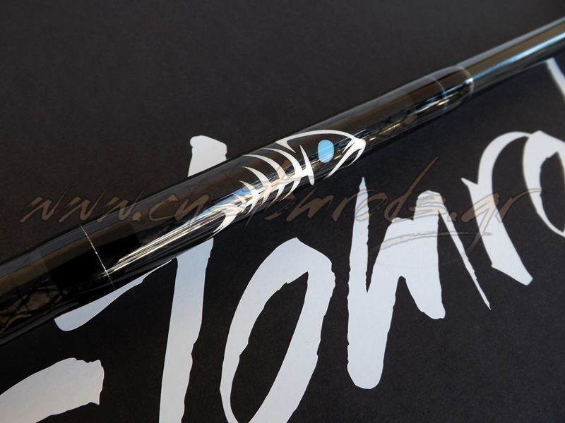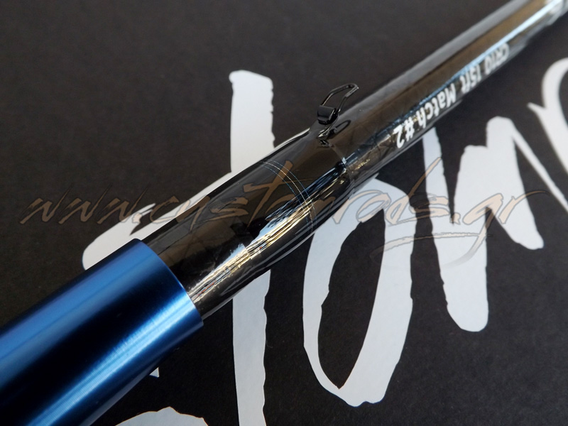 Ανακατασκευή Cadence CR10 15ft Match Rod λοιπόν με Fuji Fazlite και λογότυπα βινυλίου και μιας και το πιάσαμε στα χέρια μας να του κάνουμε και μερικές προσωπικές πινελιές. Μπήκε ένα μικρό κομμάτι θερμοσυστελλόμενο στο πίσω μέρος του eva για να το προστατέψει από τις φθορές, ο φελλός στη λαβή του καλαμιού περάστηκε ειδικό προστατευτικό υλικό για να έχει το καλάμι καλύτερη αίσθηση στο κράτημα και να καθαρίζεται ευκολότερα, ενώ τα δεσίματα έγιναν με μαύρη κλωστή εκτός τα σημεία σύνδεσης του καλαμιού. Το γαντζάκι του αγκιστριού έγινε κι αυτό με διακριτική τριχρωμία, ενώ μπήκε στο πλάι γιατί ήταν από τη κάτω μεριά δεμένο και προσωπικά μ’ ενοχλούσε καθώς θεωρώ ότι θα μπερδεύει το νάιλον σε συνθήκες αέρα